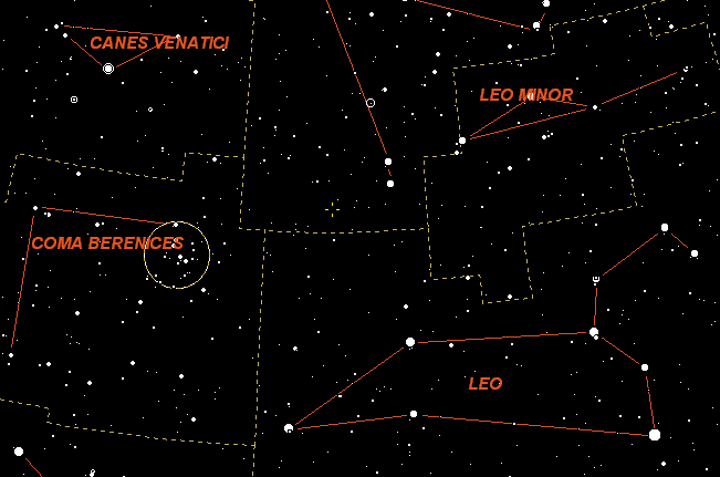 Gliese 433.1 (yellow cross hairs) is found in far southern Ursa Major, nearly in Leo.