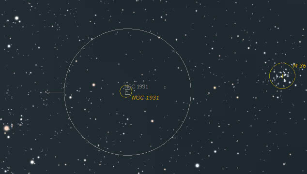 cluster M36. At the heart of the NGC 1931 cluster lies