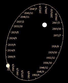 Xi Boo is a long-period binary star system discovered by William Herschel in 1780, when the stars were 4" apart. In May 2003 the separation between this pair of stars is 6.5", making them an easy target in most telescopes. The primary star is a magnitude 4.5, G8 main sequence star, much like our sun. The fainter component is 7th a magnitude K4 star, also on the main sequence. This star is much cooler and redder than the yellow-white primary, making for a fine contrast in color. The two lie at a relatively nearby distance of 22 light years and take 151 years to complete one orbit. The average separation between the two is about 30 AU, or 30 times the distance between the earth and sun. If the primary star were placed at the sun, the secondary would orbit near Neptune. The pair have completed ~1.5 orbits since Herschel's discovery. Near maximum separation today, they will close in the coming decades until 2058, when they will be separated by a mere 2.4". ![]()