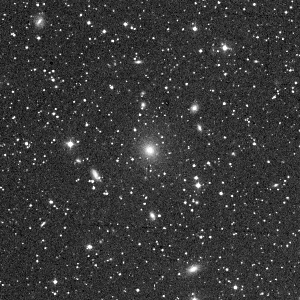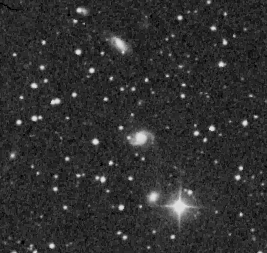 Let's begin our tour with NGC 910. This is the largest and brightest galaxy. Look for it about 1o to the southeast of the much larger NGC 891. This galaxy is relatively easy. It is a typical, round elliptical galaxy with a bright center. It is listed as a 13th magnitude elliptical that is 2' x 2' in diameter. Like most galaxies in this region it lies around 200 million light years away.
