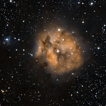 nebula (blue), cut by dark lanes of dust. All this makes for