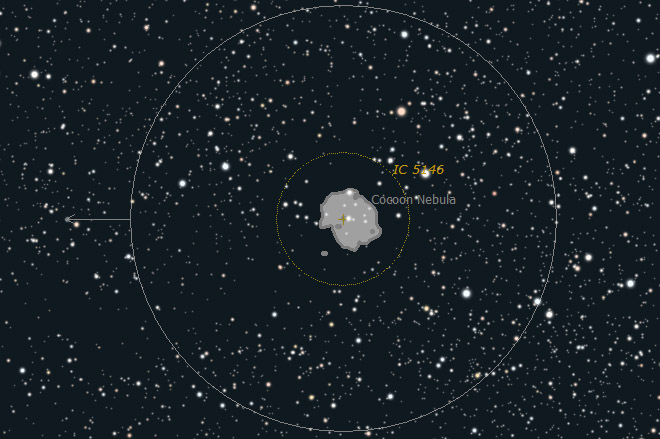 field in a 10-inch f/10 at 63x. North is down and east is right.