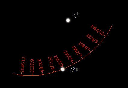 secondary star relative the the brighter primary for 100 years.