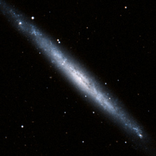 This edge-on spiral galaxy is a new favorite of mine. It shines at magnitude 10.7 and extends an extremely elongated 1.8' x 16'. A welcome change from the usual round fuzzy fair, this galaxy appears as a thin ghostly streak that comes to a point on either end. At the center is a bright, nearly stellar core.