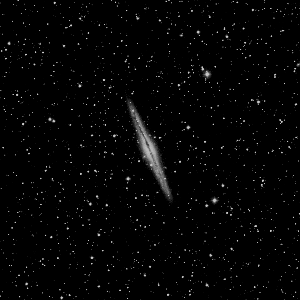 NGC 891 (Uppsala 1831, MCG 7-5-46) is one of the finest edge-on galaxies in the sky, particularly as viewed in larger instruments. Shining at nearly 11th magnitude, NGC 891 subtends a long, skinny 13' x 3'. It lies at a distance of about 20 million light years, nearly 10 times as far as M31.