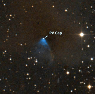 fan-shaped nebula with PV Cep at one end. PV Cep was quite