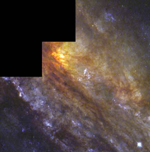 this way the blue regions in NGC 253 trace the places where stars
