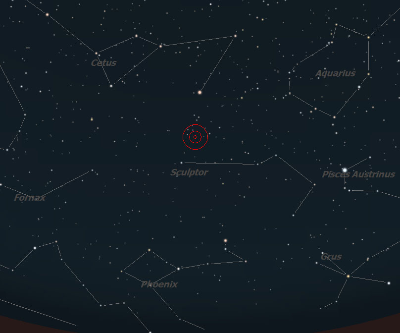 Due to its southerly declination, NGC 253 does not rise high in the